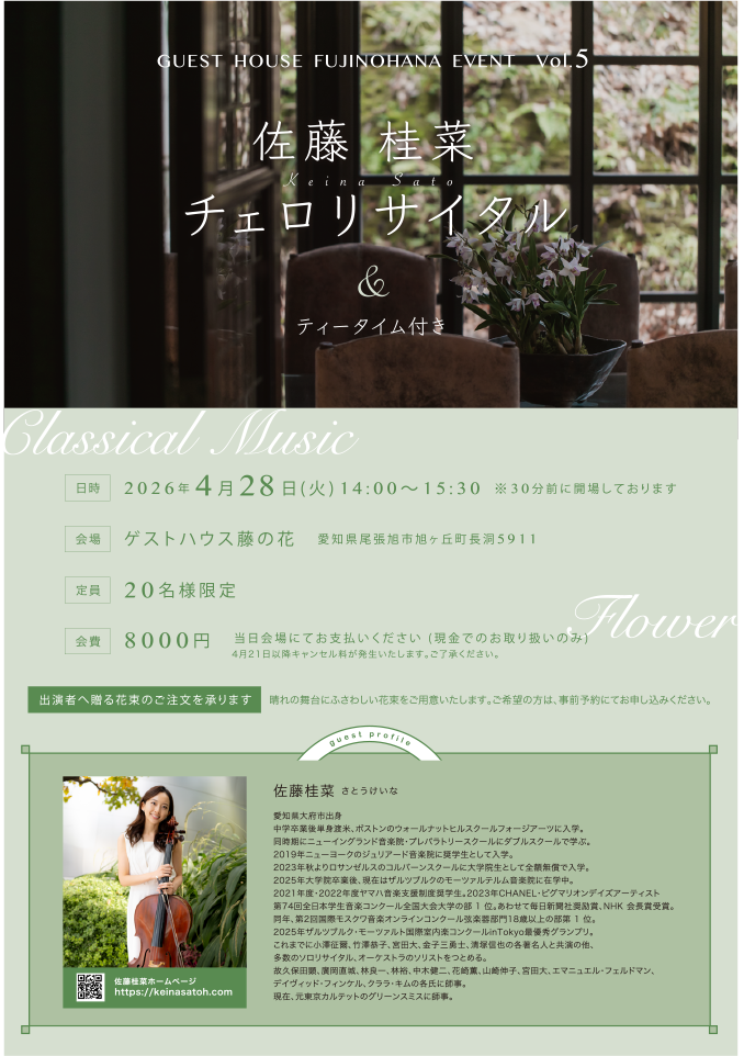 佐藤佳奈チェロリサイタル予約